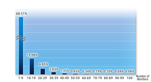As was discovered in the previous census, during a 24-hour period, 68% of linkshells were populated by up to 10 members, while 87% of linkshells were populated by up to 20 members.