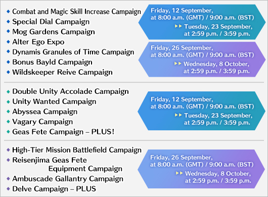 The following campaigns will commence on Friday, 12 September, at 8:00 a.m. (GMT) / 9:00 a.m. (BST)