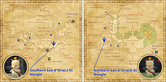 Speak to a moogle in the following locations in order to obtain your reward.