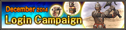 Get ready for fabulous prizes, as the December 2014 Login Campaign commences today! Receive points each day just for saying hello to the citizens of Vana'diel, and exchange them for various in-game rewards!