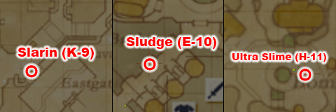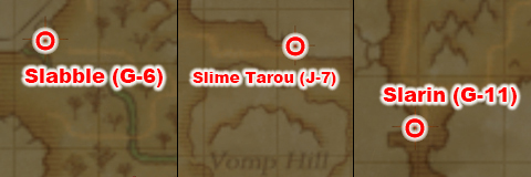 1) Talk to one of the slimes in the following areas to participate: