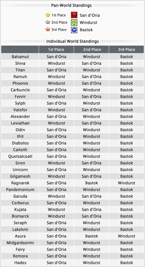 Congratulations to the leading nation! All you adventurers keep representing, kupo!