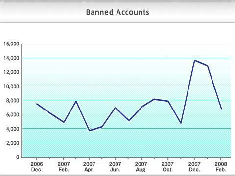 Today's report will outline our actions conducted from February 21, 2008 to March 25, 2008 in dealing with players violating the user agreement, as well as details on the activities, results, and goals of the Special Task Force.