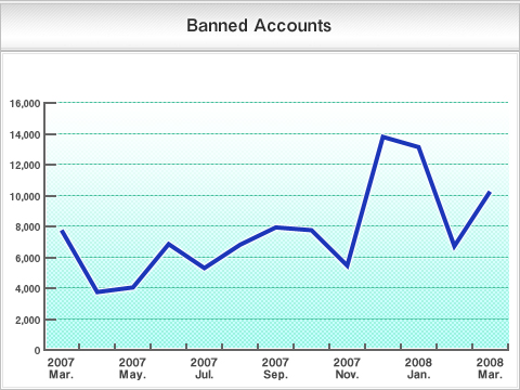 Today's report will outline our actions conducted from March 26, 2008 to April 23, 2008 in dealing with players violating the user agreement, as well as details on the activities, results, and goals of the Special Task Force.