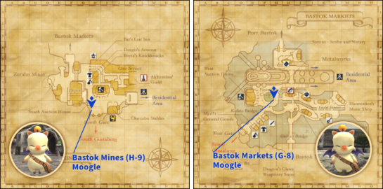 Speak to the Curator Moogle in one of the following areas to check the items needed to make the exchange.