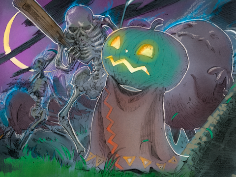 To the ghouls and ghosts, the ghastly, glowing orange head atop a tattered mantle beating in the wind made for a positively curious sight. But having no reason to assume that the creature undulating to and fro before them was anything other than that which it claimed, the phantasmal procession continued on, unquestioning. So it was that the young man survived his literal brush with death.