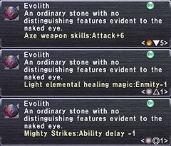 Little more than nondescript rocks at first glance, the substance known as evolith has long escaped the notice of the inhabitants of Vana'diel. Closer investigation, however, has revealed that these ancient stones harbor elemental power to rival that of crystals. With advances in the emerging discipline of synergy*, the time has come that their latent potential may at long last be tapped...