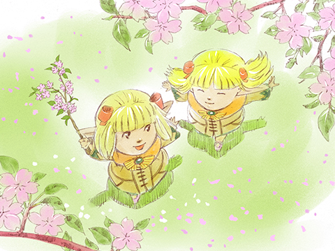 The sun was high in the sky when Ruciaine came upon a young Tarutaru girl merrily at play beneath a cherry tree. The next moment, there was a great gust of wind, which stirred up a flurry of pink blossoms and deposited one particularly fat, fuzzy caterpillar directly onto the poor girl's nose.