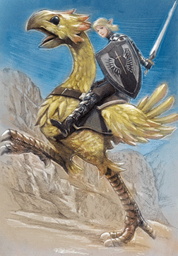 But once the practice of riding bareback was civilized with the invention of reins and saddles, the number of people using chocobo mounts suddenly soared. Merchants now preferred chocobos for long, overland journeys, and the military adopted the birds for use in highly mobile cavalry units. People began selective breeding programs as the chocobo craze spread to every corner of Vana'diel.