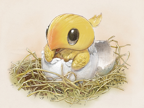 A: By the time chocobo chicks break out of their shells, they are already covered in down and can see clearly. They can even stand on their own two feet and take their first unsteady steps after a single day has passed. When chocobos still ran wild on the Quon continent, they needed to be able to run from carnivorous prey in order to survive.