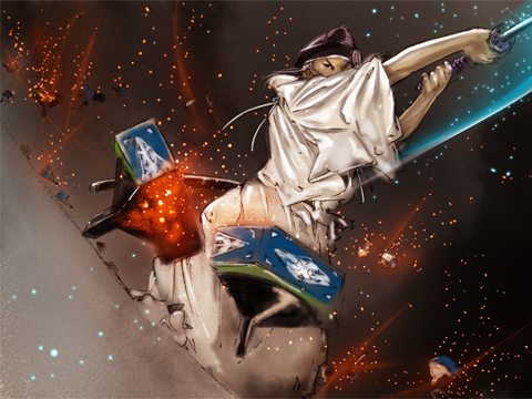 "And you say this one will be adequate?" an attendant queried incredulously. Nodding, Shino accepted the wooden training sword; he'd keep the steel one that hung from his waist sheathed outside of a true battlefield. Meanwhile, the crowd's stares were so palpable he could feel each one stabbing his flesh. Men, women, and children of all ages were present at this event, and Shino knew that a poor performance could sully the reputation of all Far Eastern blacksmiths in their eyes.