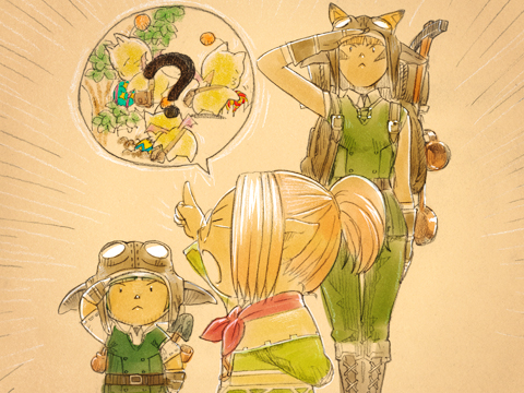 "How's that article coming, Konana? You said you'd finally uncover-wover the secrets behind those mysterious moogle eggs, right?"